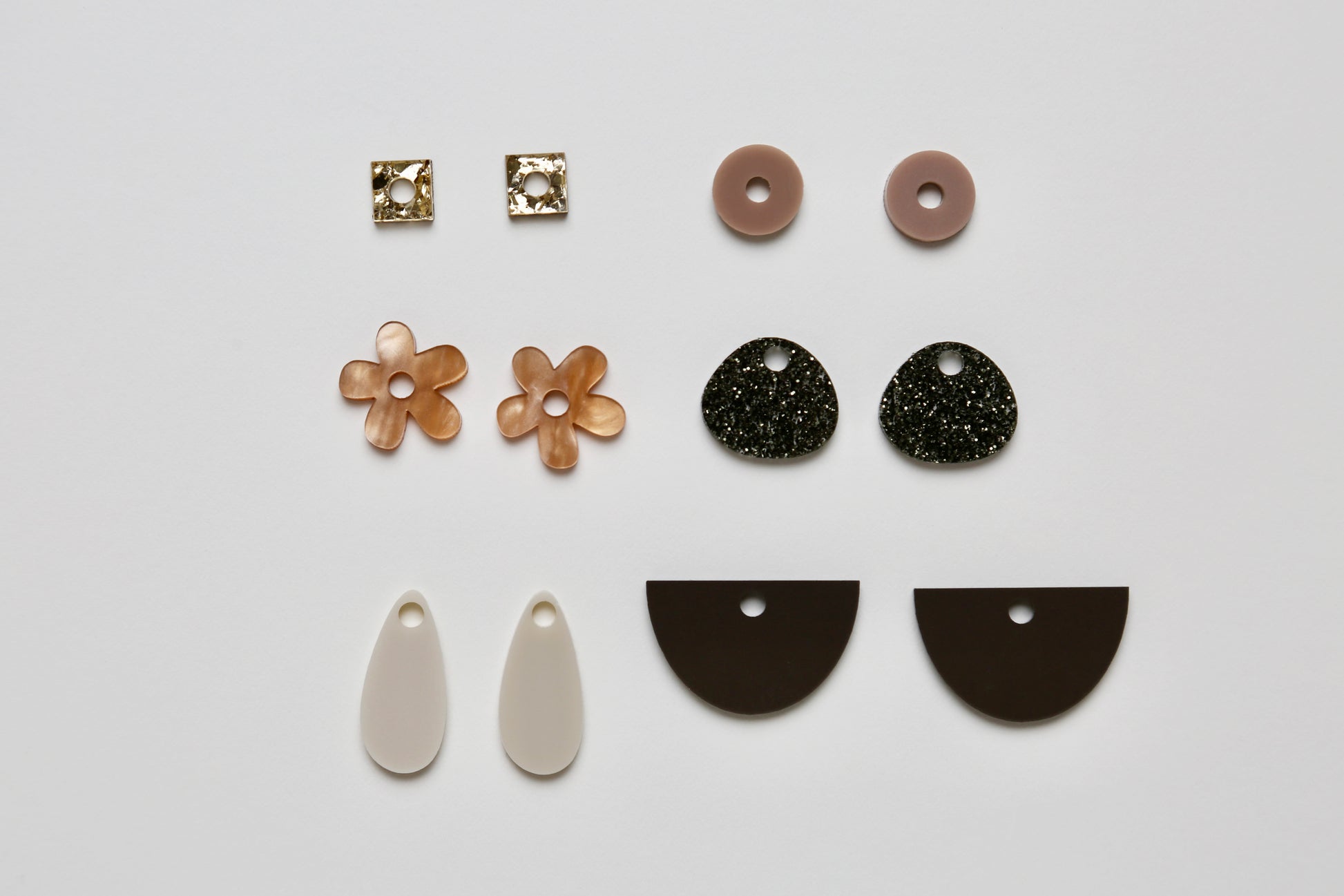 The SWITCH Desert Dust pack is inspired by a neutral landscape. The pack includes 6 pairs of attachments and 1 pair of selected huggies. Select from your choice of Yellow Gold, Silver or Black Huggies.